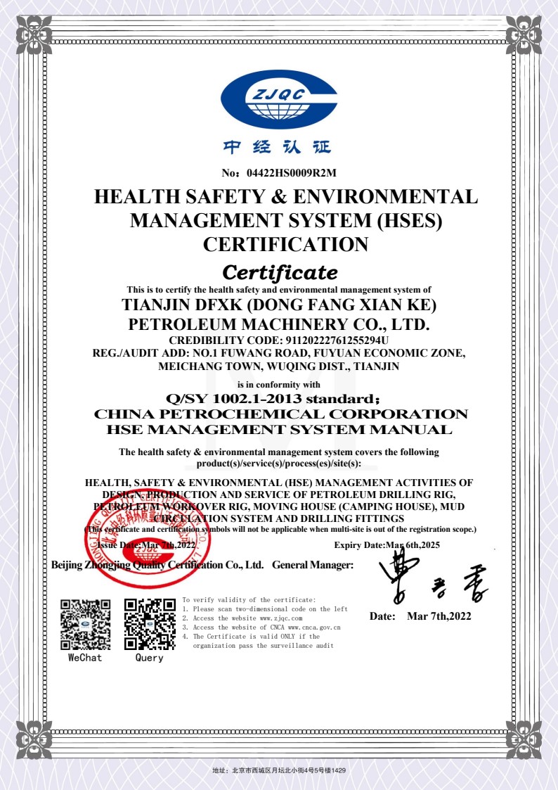 健康、安全與環(huán)境管理體系認(rèn)證證書