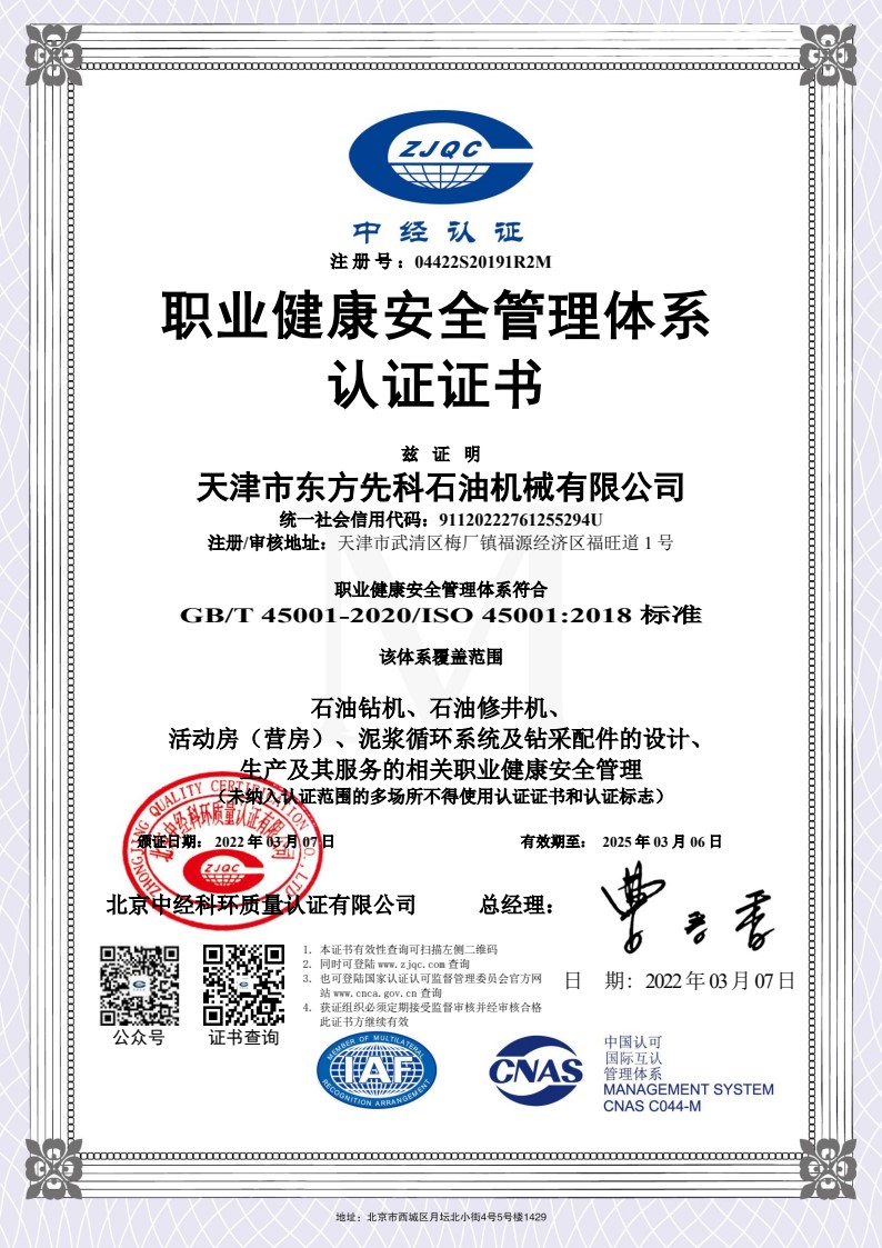 職業(yè)健康安全管理體系認(rèn)證證書英文