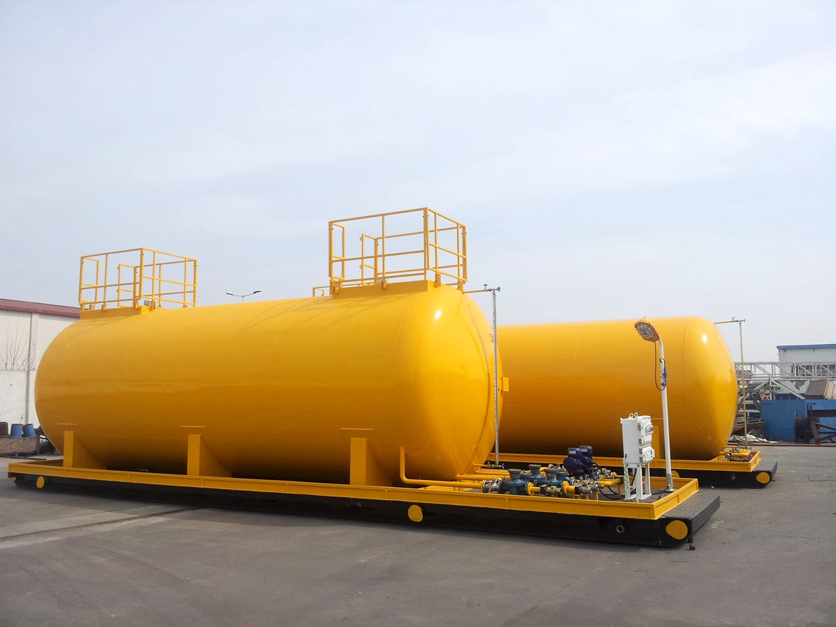 柴油罐是為鉆機(jī)動(dòng)力機(jī)(柴油機(jī)、發(fā)電機(jī)等)提供儲(chǔ)備燃油的專(zhuān)用設(shè)備,油罐主要由底座、油罐、管道離心油泵、過(guò)濾器、流量計(jì)、液位計(jì)、管匯、不銹鋼球閥等部件組成。