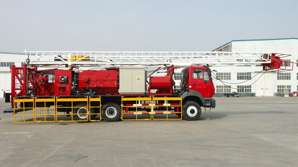 車裝修井機(jī)是將動力系統(tǒng)、絞車、井架、游車系統(tǒng)及傳動系統(tǒng)等部件安裝于自走式底盤上。整機(jī)具有結(jié)構(gòu)緊湊,集成度高,占地面積小,移運快捷,搬遷效率高等特點。