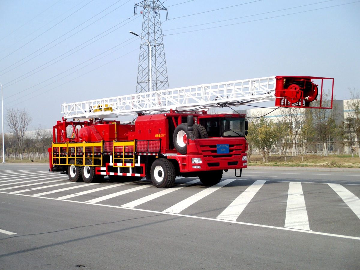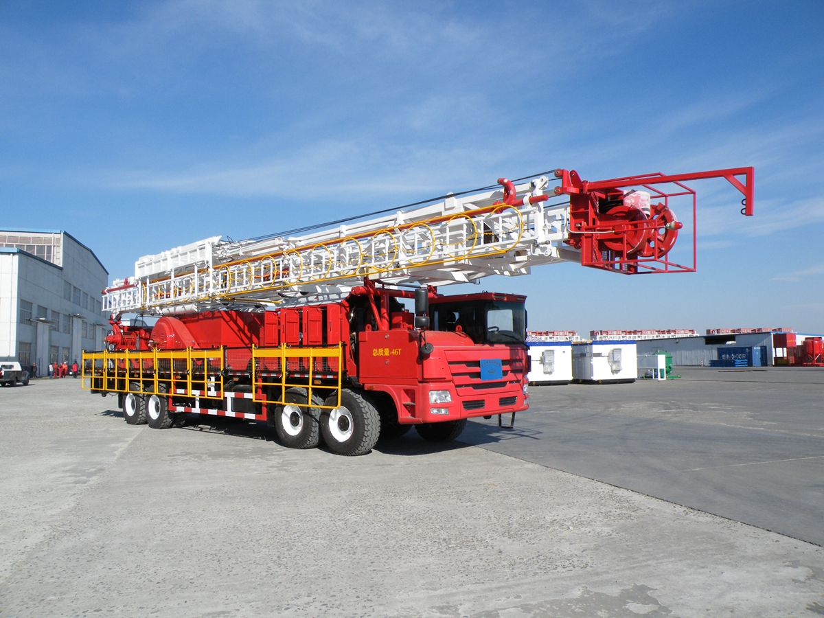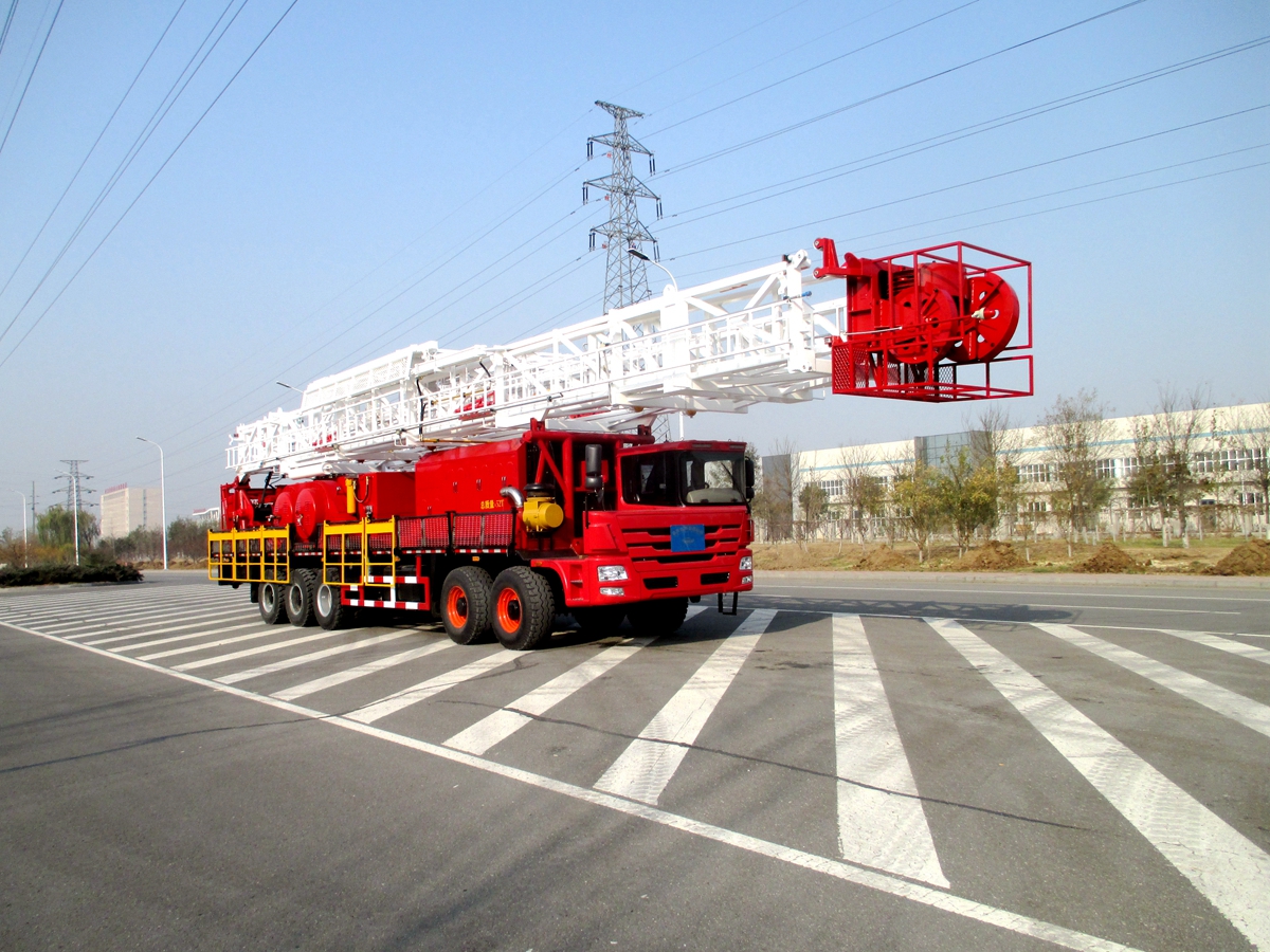 車裝修井機是將動力系統(tǒng)、絞車、井架、游車系統(tǒng)及傳動系統(tǒng)等部件安裝于自走式底盤上。整機具有結構緊湊,集成度高,占地面積小,移運快捷,搬遷效率高等特點。